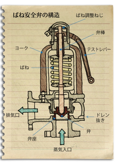 ボイラー本体の安全弁より高い圧力にちょうせいします。