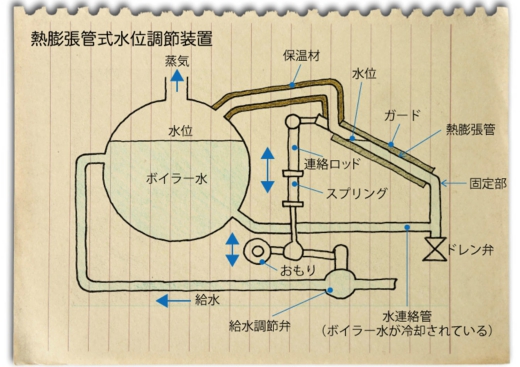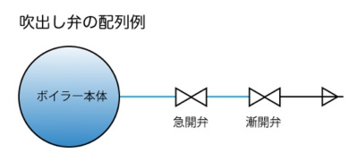 1. 熱膨張管の蒸気側、水側は1日1回以上、ドレン弁を開いてブローします。