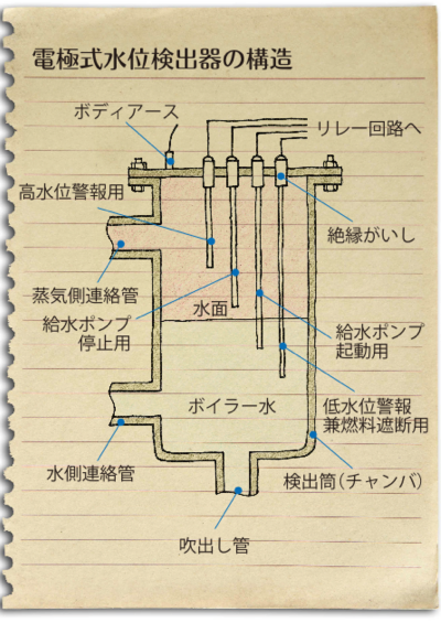 水面測定装置はボイラーの水位を正確に知るための重要な装置です。常に機能を正常に保持するため、毎日の点検が義務づけられています。常に二組で使用されますが、二組とも機能が正常であることが、異常の有無の判別につながります。