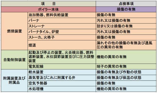 ・給水装置、通風装置、水処理装置、燃焼装置関係機器等は、日頃から運転状態の不良を感じるところがあれば、製造者に対策を相談し、修繕処置をしなければいけません。