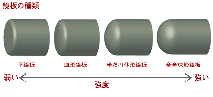 ●平鏡板 ●皿形鏡板 ●半だ円体形鏡板 ●全半球形鏡板