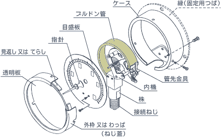 ブルドン管圧力計の基本構造図(株式会社第一計器製作所提供)