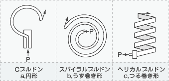 ブルドン管の形状の種類(株式会社第一計器製作所提供)