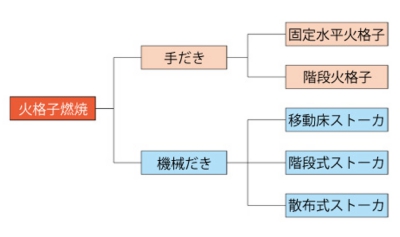 火格子燃焼装置には手だき火格子と機械だき火格子に大きく分けられます。
