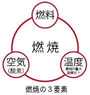 燃焼とは、物質が熱と光を発して酸素と化合する現象をいいます。ボイラーの燃焼は、燃料と空気(酸素)が燃焼室で反応することですが、これだけでは燃焼することはなく、点火源があり、燃料、燃焼室の温度が燃料の着火温度以上になっていなければなりません。
